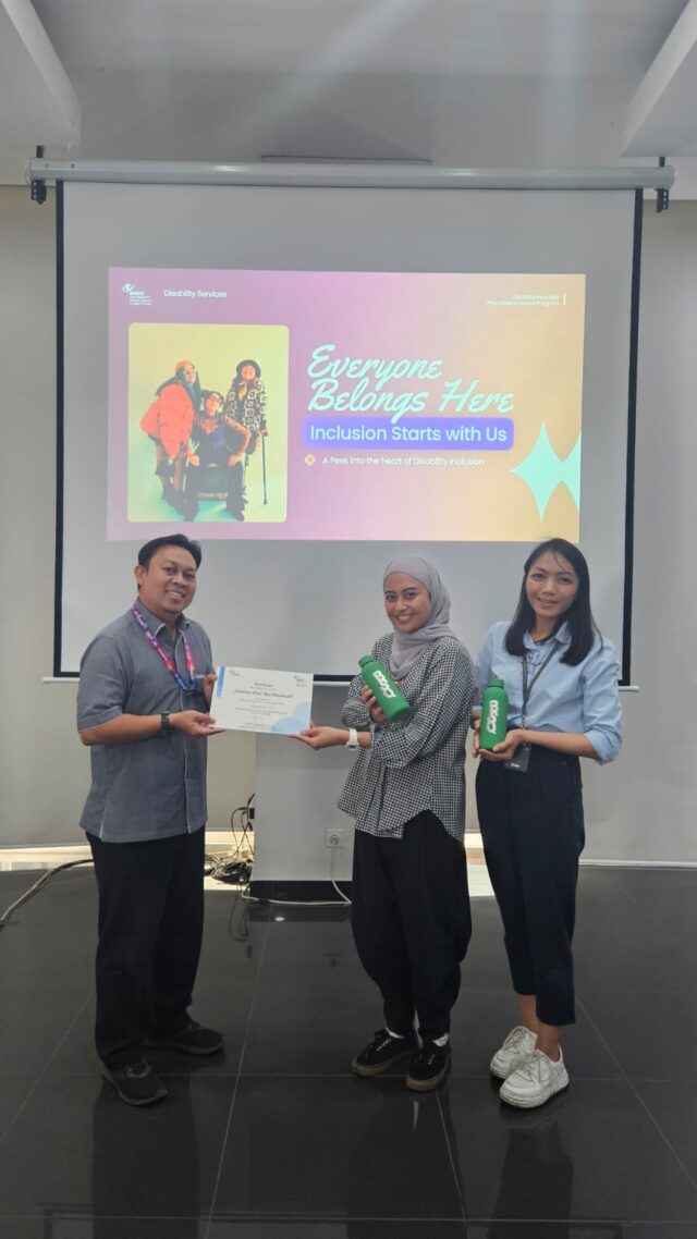 Acara ditutup dengan sebuah pledge activity. Setiap boarder menempelkan tangan yang telah dilumuri cat ke sebuah kanvas bertuliskan “Everyone Belongs Here” sebagai simbol janji dan komitmen mereka untuk menerima dan menjaga semangat inklusi dalam kehidupan sehari-hari. Sebagai bentuk apresiasi, Kak Annisa menerima sertifikat dan souvenir yang diserahkan oleh Kak Aditia Perdana, kemudian acara diakhiri dengan sesi foto bersama.