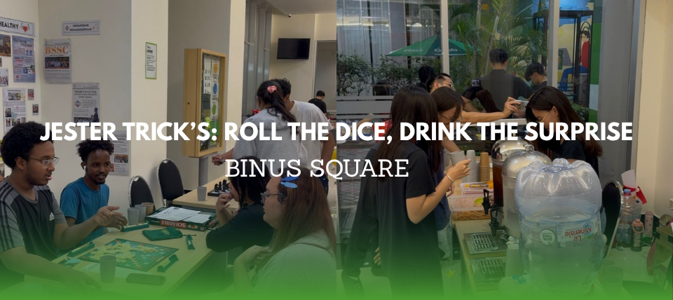 Jakarta, 2026 – Jester’s Tricks : Roll the dice, drink the surprise merupakan salah satu kegiatan hiburan yang diselenggarakan oleh Floor Coordinator BINUS Square sebagai bagian dari program kebersamaan bagi para boarder yang tinggal di BINUS Square Hall of Residence, Kebon Jeruk, Jakarta Barat. Acara ini dilaksanakan secara offline dengan konsep santai dan interaktif yang menggabungkan berbagai board games dan card games dalam suasana yang fun dan playful dengan sentuhan tema April Fools serta elemen Jester yang melambangkan hiburan dan keseruan.