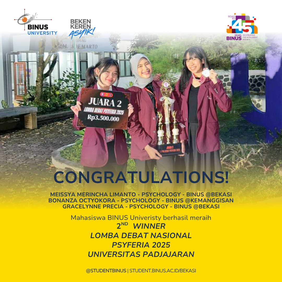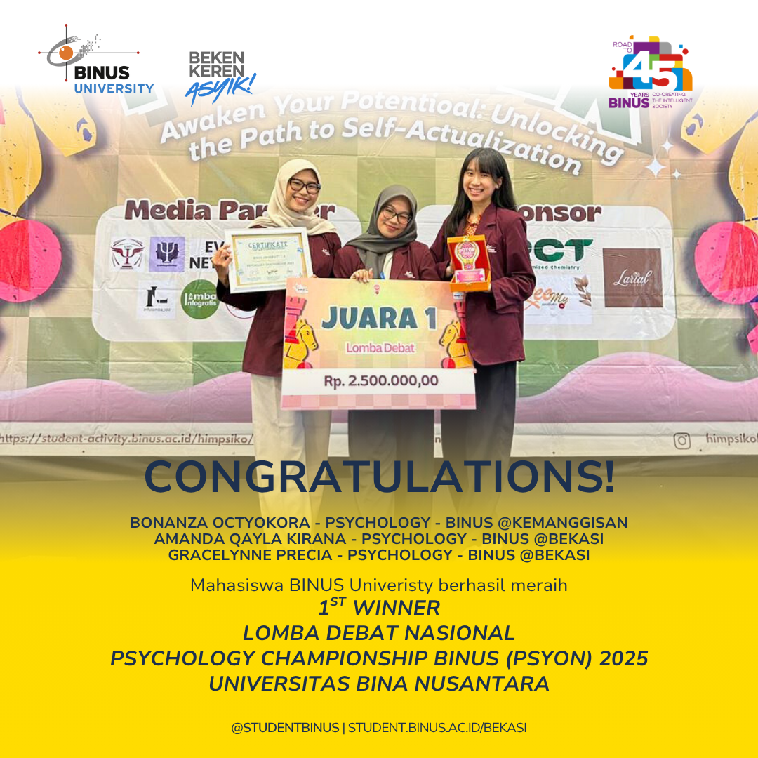 1st Winner – Lomba Debat Nasional PSYCHOLOGY CHAMPIONSHIP BINUS (PSYON) 2025, Universitas Bina Nusantara