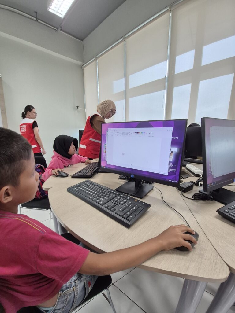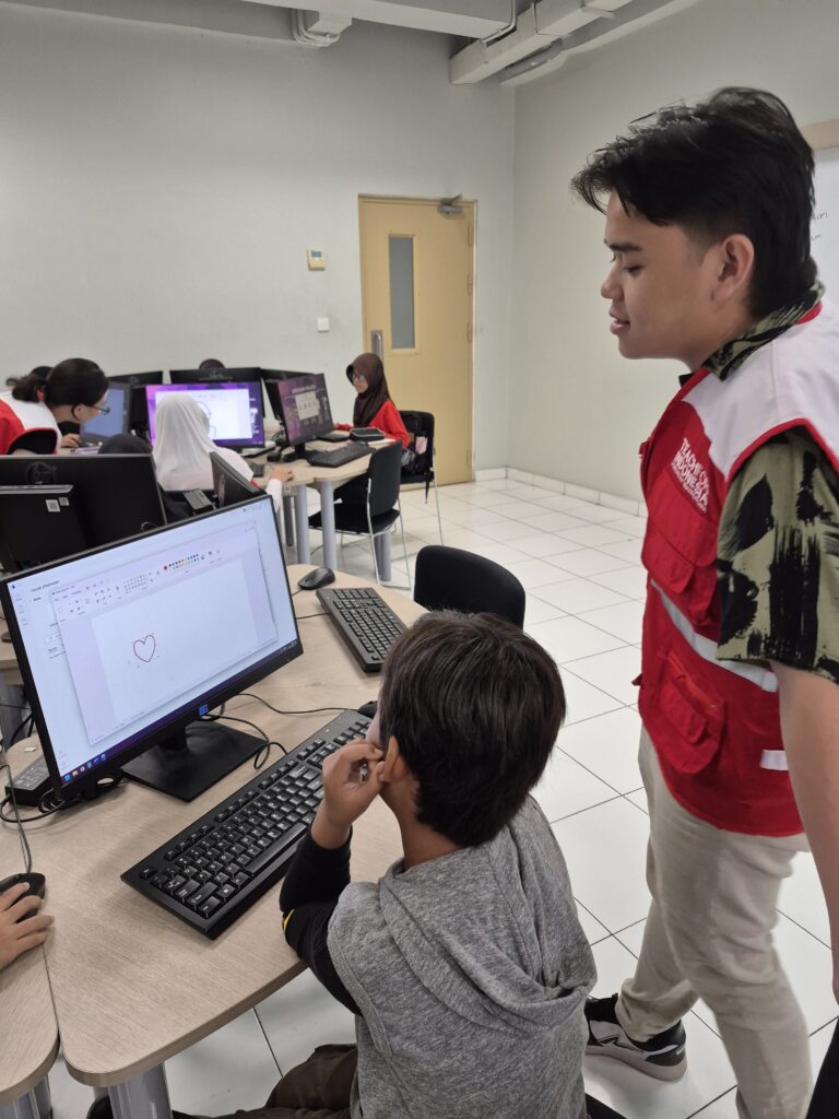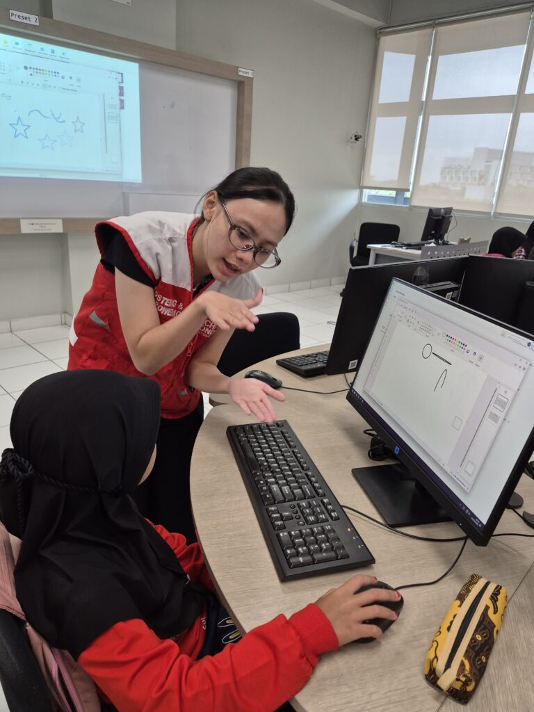 Dalam pelaksanaannya, para mahasiswa tidak hanya berperan sebagai fasilitator, tetapi juga menyusun materi pembelajaran yang disesuaikan dengan tingkat dan kebutuhan peserta. Untuk siswa Sekolah Dasar (SD) kelas awal, materi difokuskan pada pengenalan dasar komputer serta kegiatan kreatif seperti menggambar menggunakan aplikasi Paint. Sementara itu, bagi siswa SD kelas atas hingga SMP, pembelajaran diarahkan pada penggunaan Microsoft Word, mulai dari mengetik, mengatur format teks, hingga membuat dokumen sederhana.