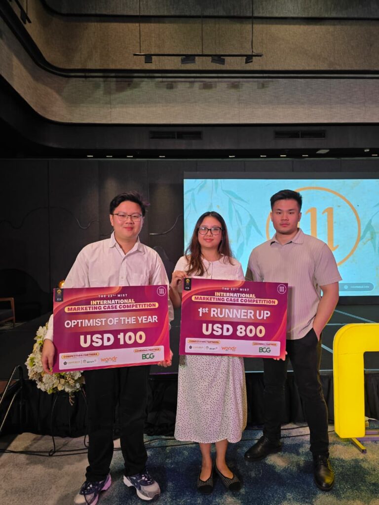 Kami bertiga berfokus pada strategi yang didasari oleh data yang esensial dalam mematangkan strategi kami. Tantangan terbesar untuk kami terjadi seusai sesi company visit. Insight mengenai realita di lapangan membuat kami mengambil risiko menggeser fokus campaign pada H-1 pitching. Kami bertiga memberikan effort terbaik kami, meski pada akhirnya kami belum membawa pulang piala Juara 1, pengalaman ini tetaplah berharga. Kami berhasil menjadi first runner-up serta mendapatkan award OptiMIST of The Year yang membuktikan kemampuan kami berkompetisi di skala internasional. Selain itu, saya juga bersyukur bisa berkompetisi bersama teman-teman terdekat saya, bertemu orang-orang baru, serta belajar dari para marketing leaders ternama di Indonesia.