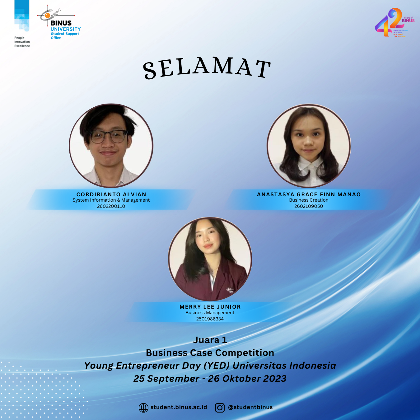 1st Winner Business Case Competition Young Entrepreneur Day (YED) Universitas Indonesia